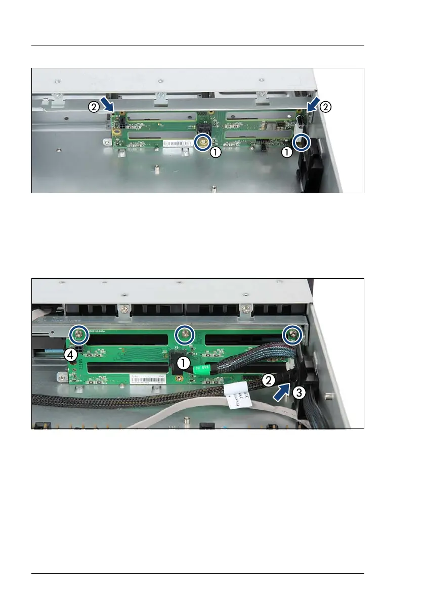 Ê Fasten the HDD backplane with the three screws (see circles).