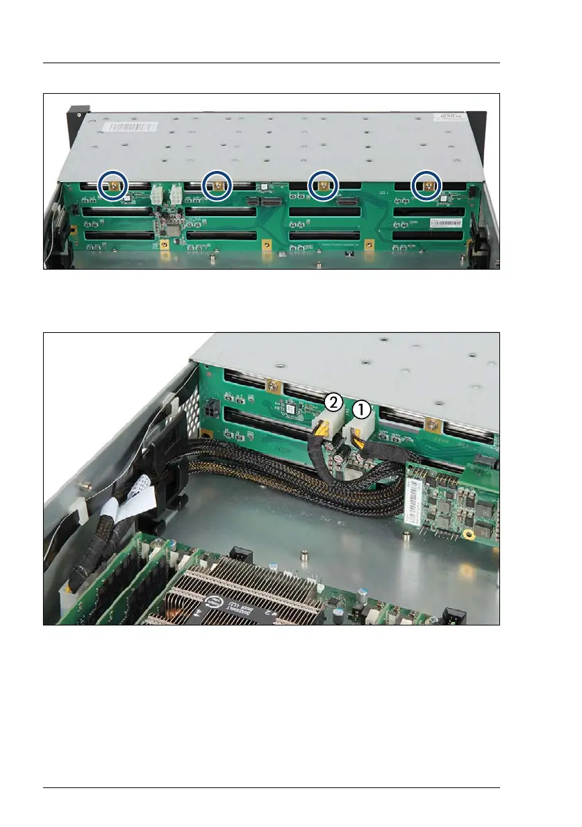 Ê Fasten the HDD backplane with 4 screws (see circles).