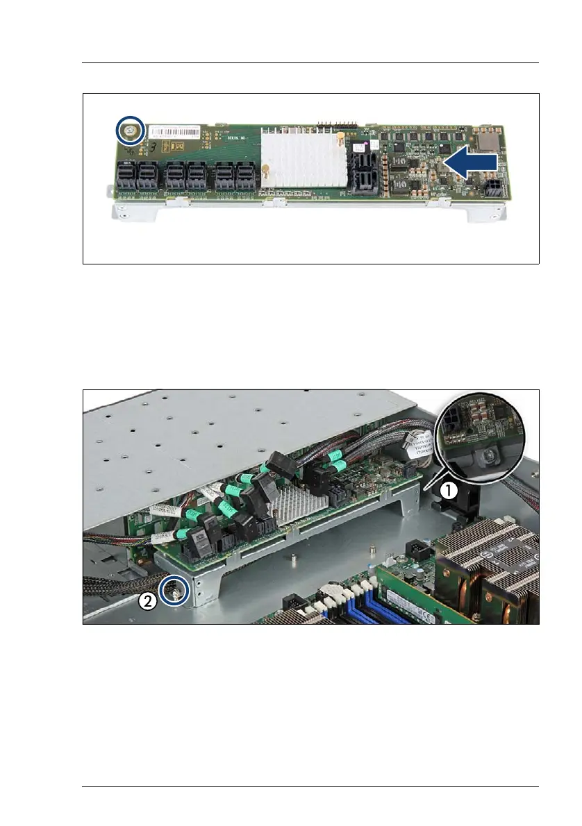 Ê Fasten the SAS expander board holder with the two screws (1, 2).