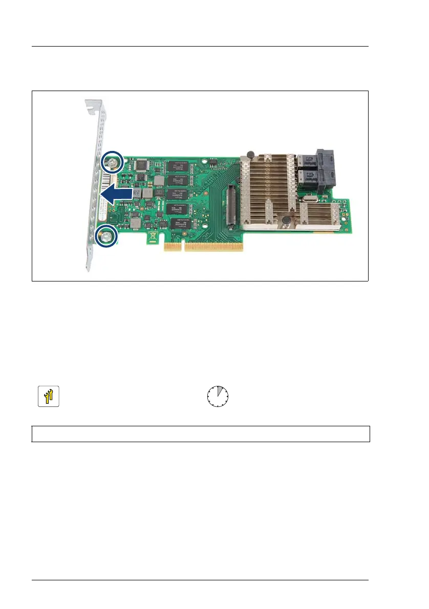 Ê Secure the slot bracket to the expansion card with two screws (see circles).