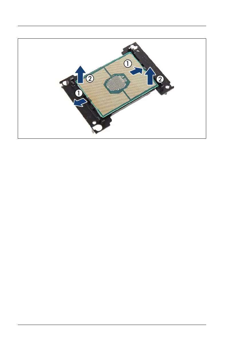 Ê Press the two noses in the direction of the arrows (1) and remove the CPU