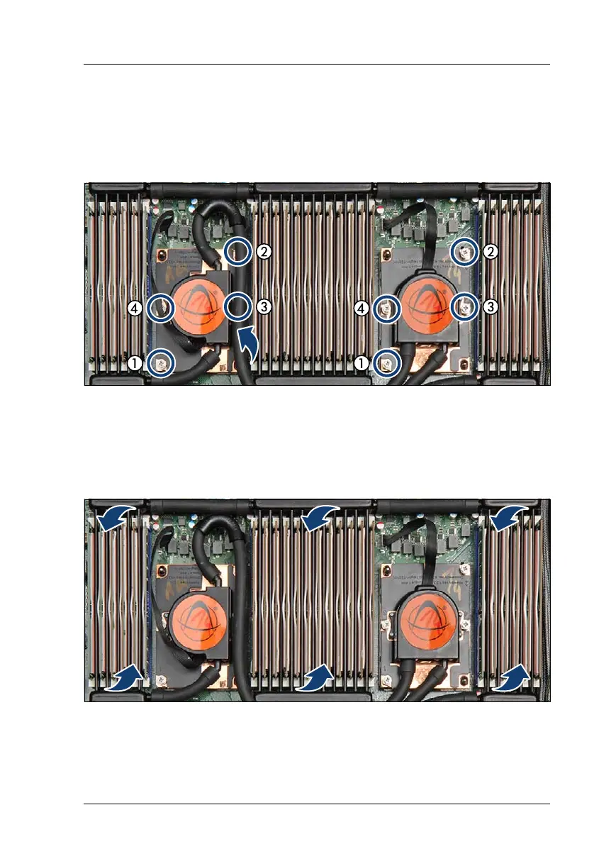 Ê Remove the four captive screws for CPU 1 in a crossover pattern (4 to 1).