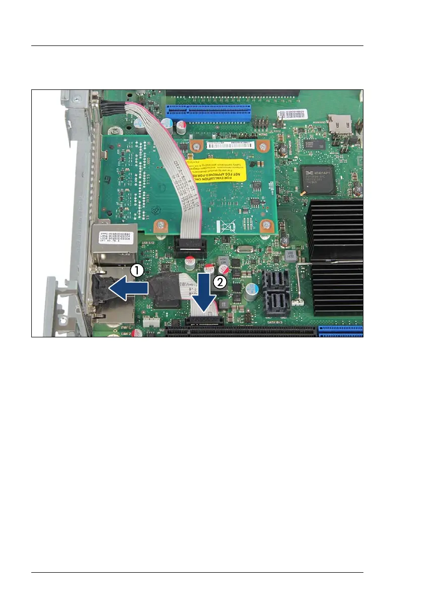Ê Connect the cable to the connector Rear VGA on the system board (2)