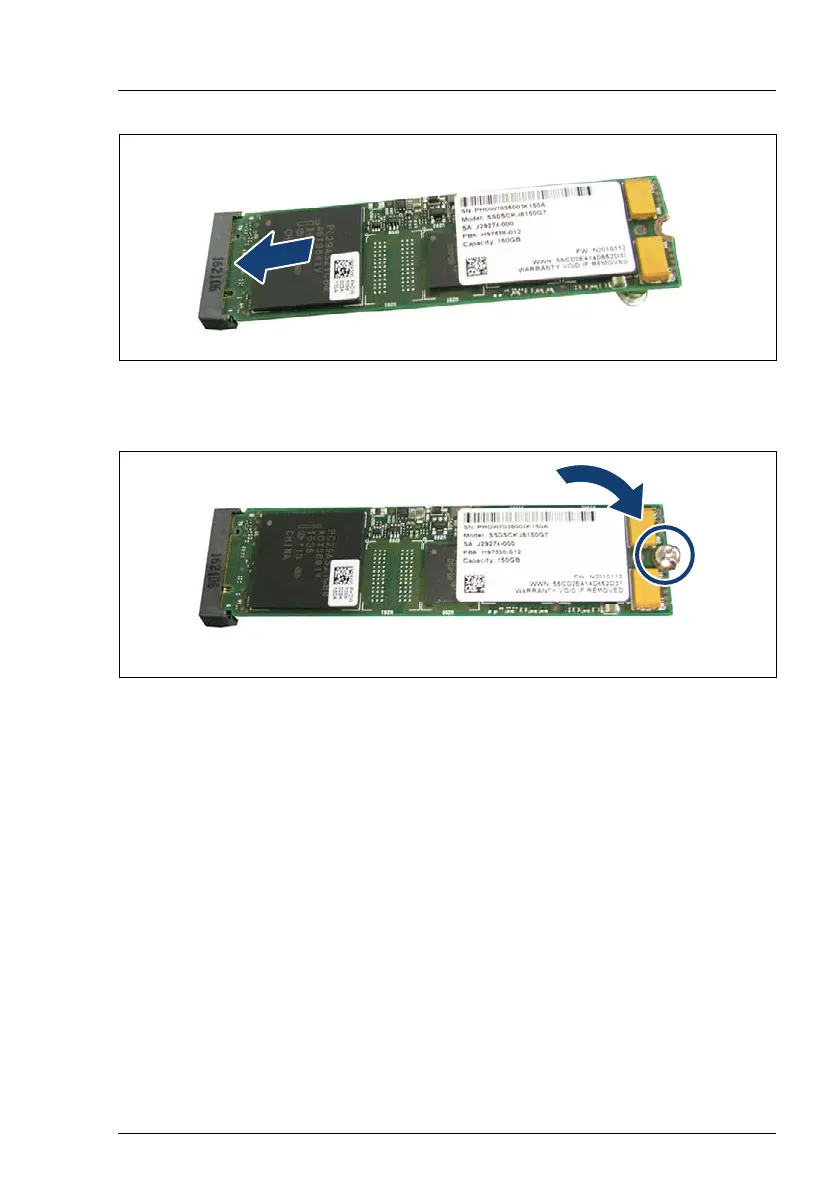 Ê With the label facing up, insert the M.2 SSD into the M.2 slot at a slight angle.