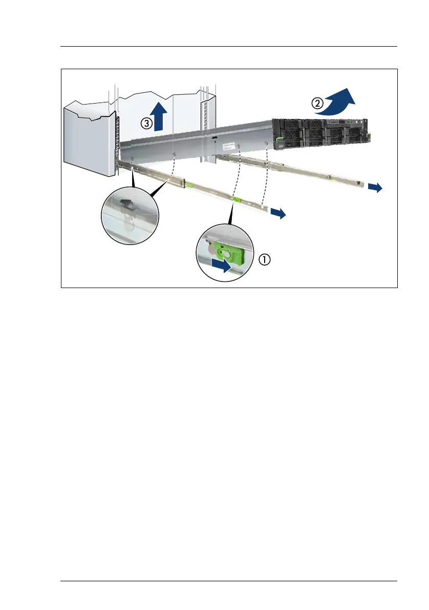 Ê Lift the server out of the rear mounting points (3) and place it on an even