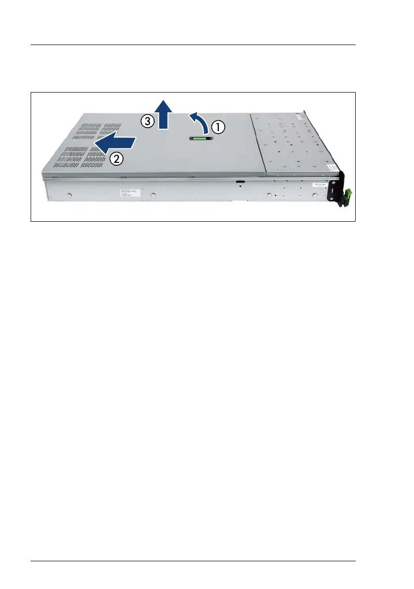 Ê Open the locking lever (1). This will slide the top cover back disengaging the