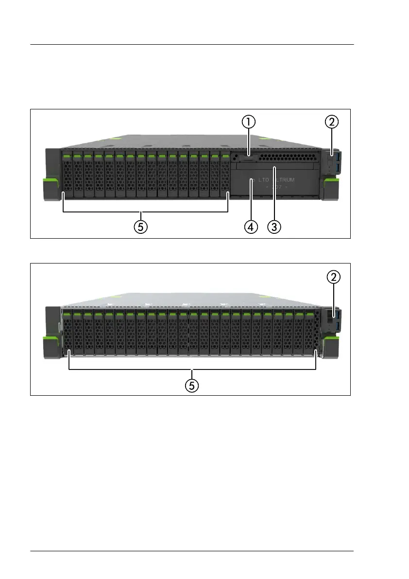 The ODD (3), the LTO drive or RDX drive (4) and the front VGA (1) are options
