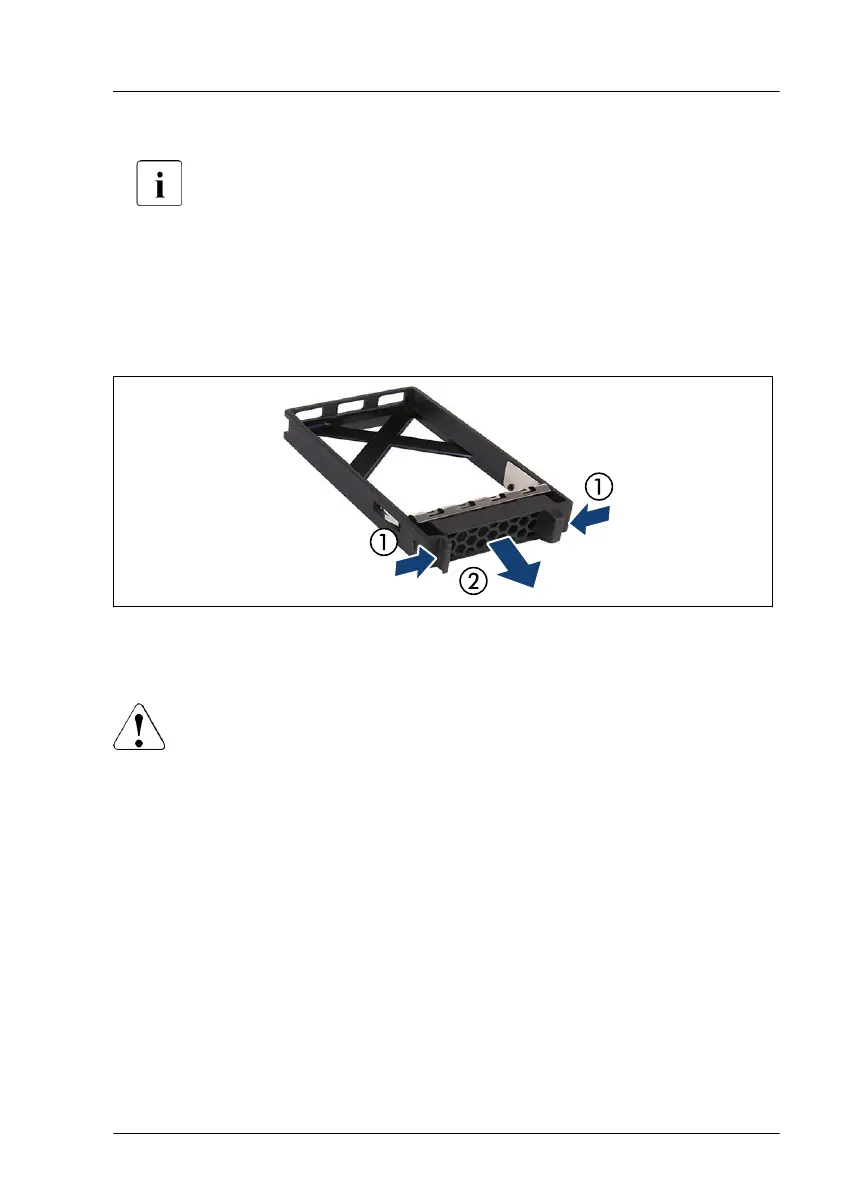 Press both tabs together (1) and pull the dummy module out of its bay (2).