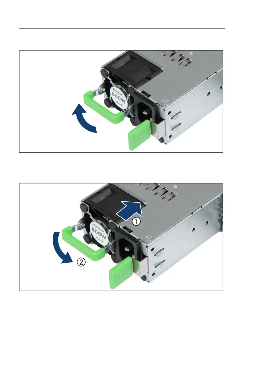 Push the handle of the PSU halfway upward in the direction of the arrow