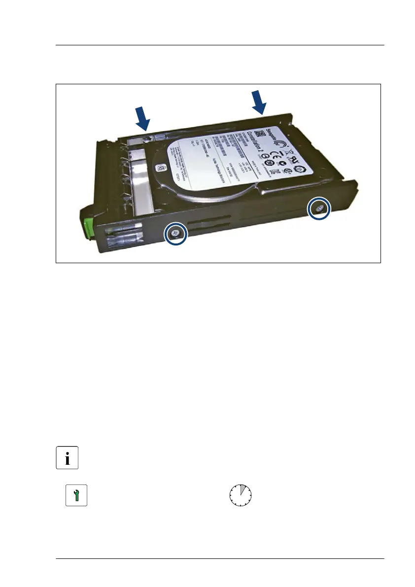 Lay the 2.5-inch HDD/SSD into the 2.5-inch installation frame as shown.