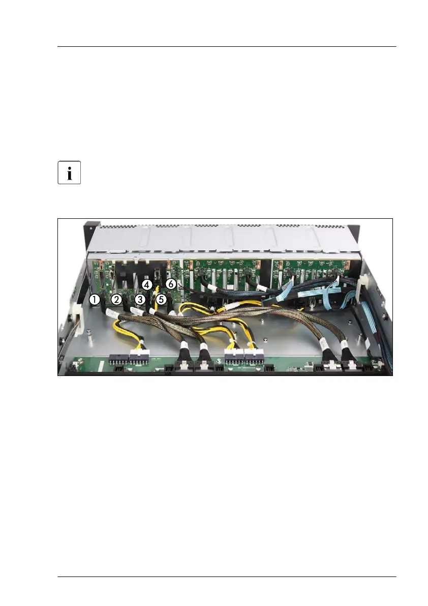 Figure 95: Connecting cables to the 8x 2.5-inch combo HDD backplane (example onboard