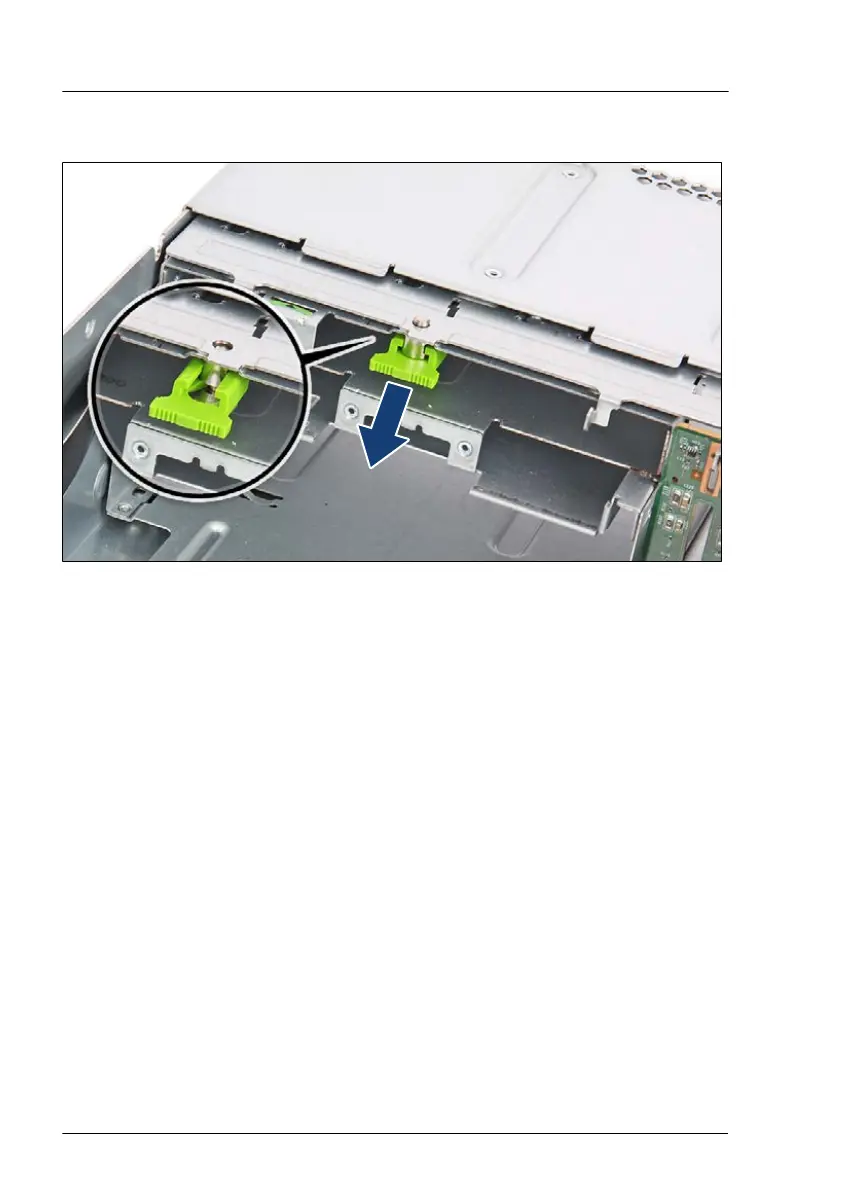 Pull the locking latch in the direction of the arrow to unlock the front panel