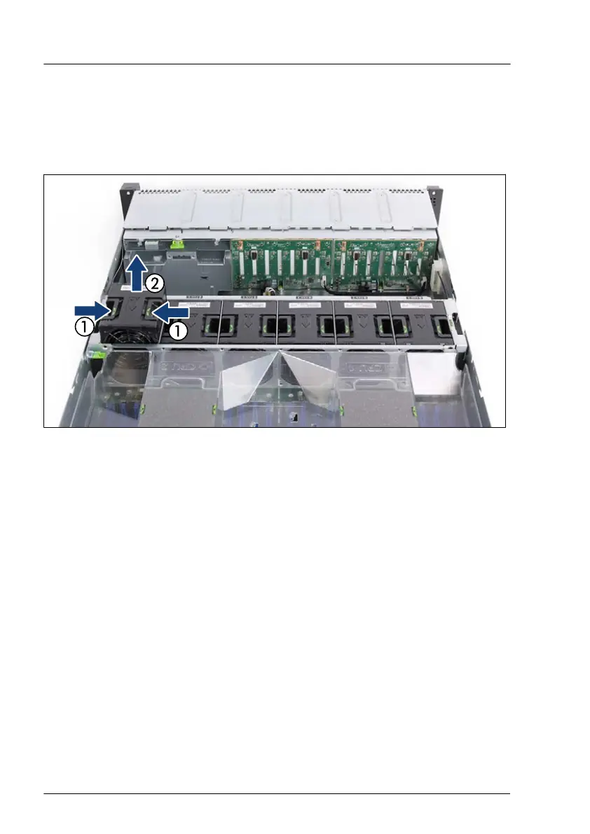 Lift the fan module out of the fan cage (2).