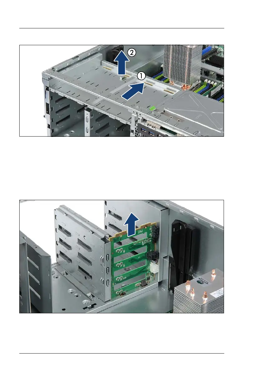 Remove the 3.5-inch HDD bay top cover from the chassis (2).