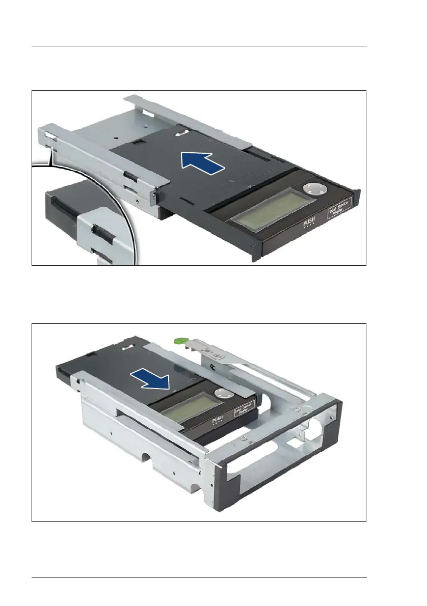 From the front, slide the LSD module into the 3.5-inch installation frame until