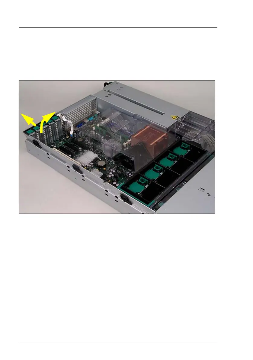 Ê Push the green PCI board holder toward the rear (1).