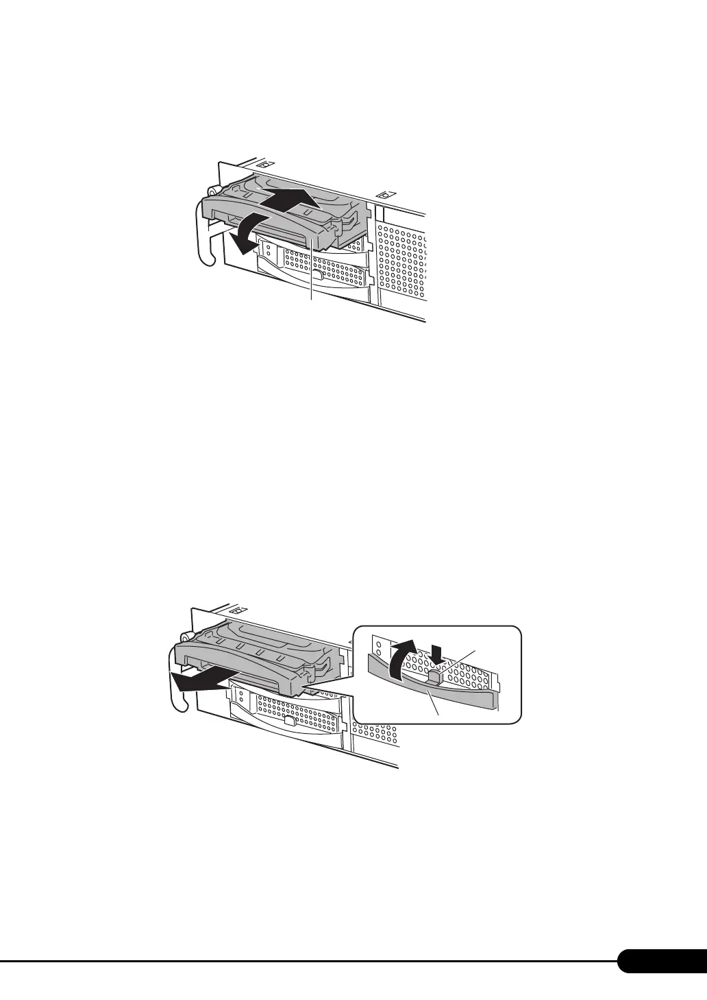 Raise the handle while pushing the tab at the front of the internal hard disk unit and draw it
