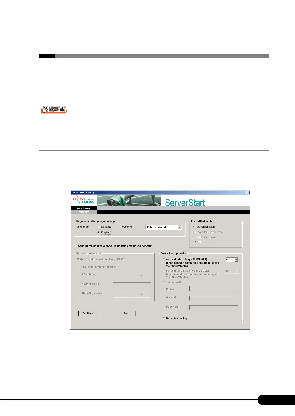 1 Turn on the server and insert PRIMERGY Startup Disc immediately.
