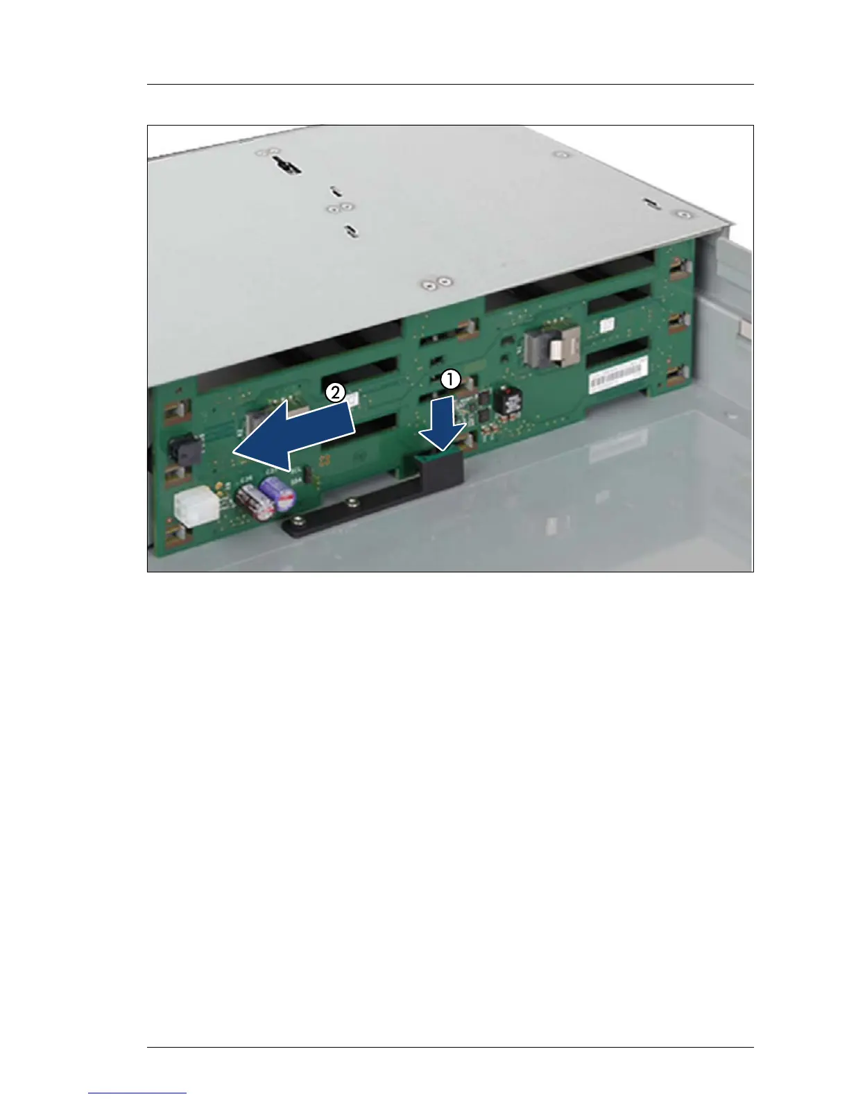 SAS / SATA backplane in the direction of the arrow (2) until it unlocks out of