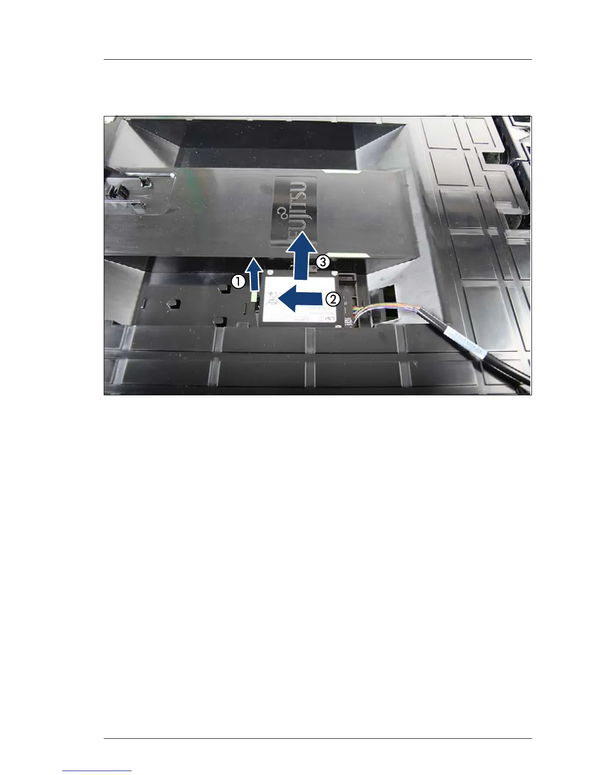 Ê Lift up the green locking handle on the BBU holder (1) while sliding the BBU