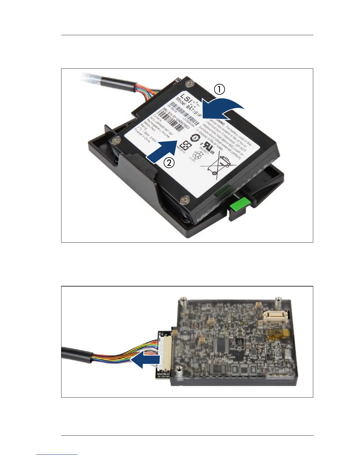 Ê Press out on the right retaining bracket on the BBU holder (1) to disengage
