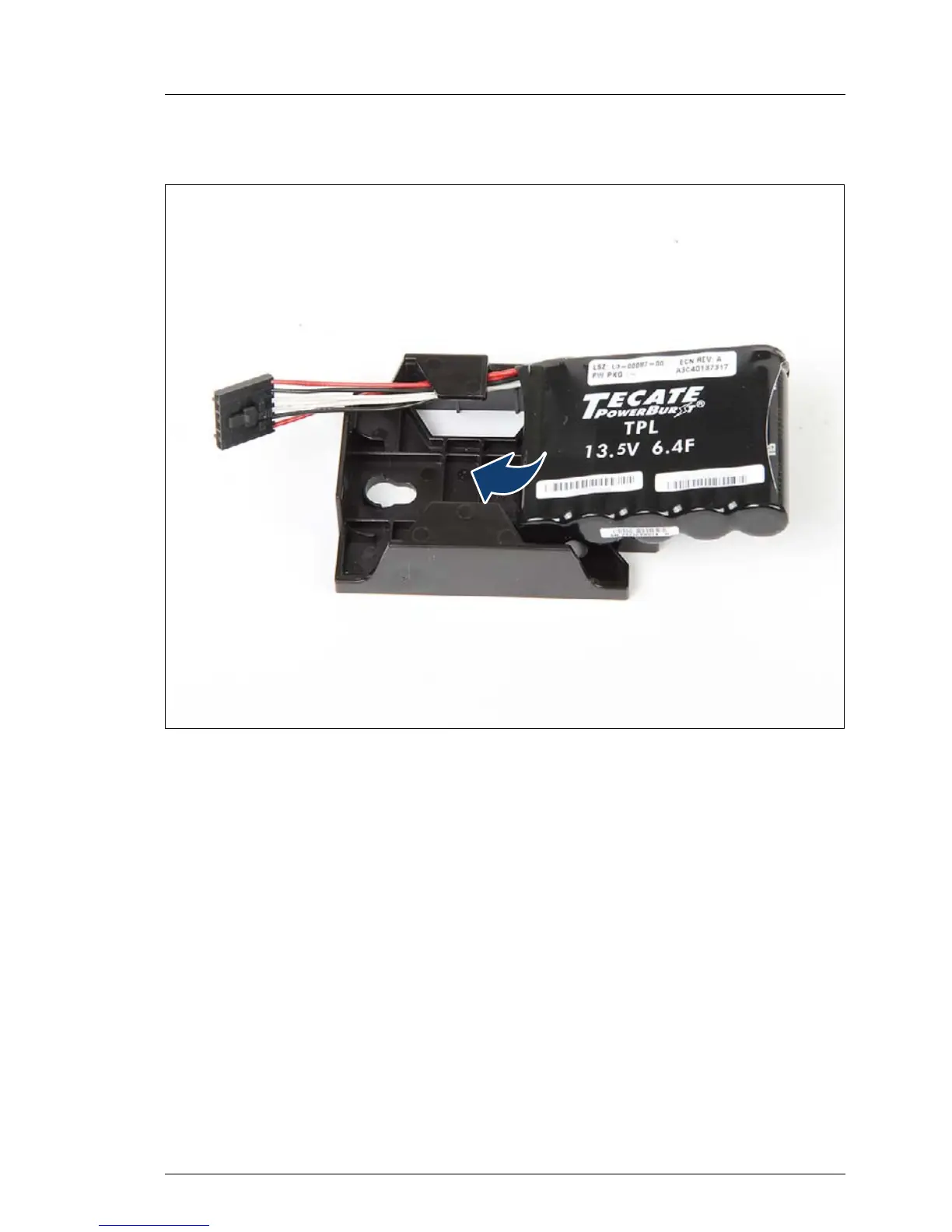 Ê At a slight angle, fit the FBU under both retaining brackets of the FBU holder