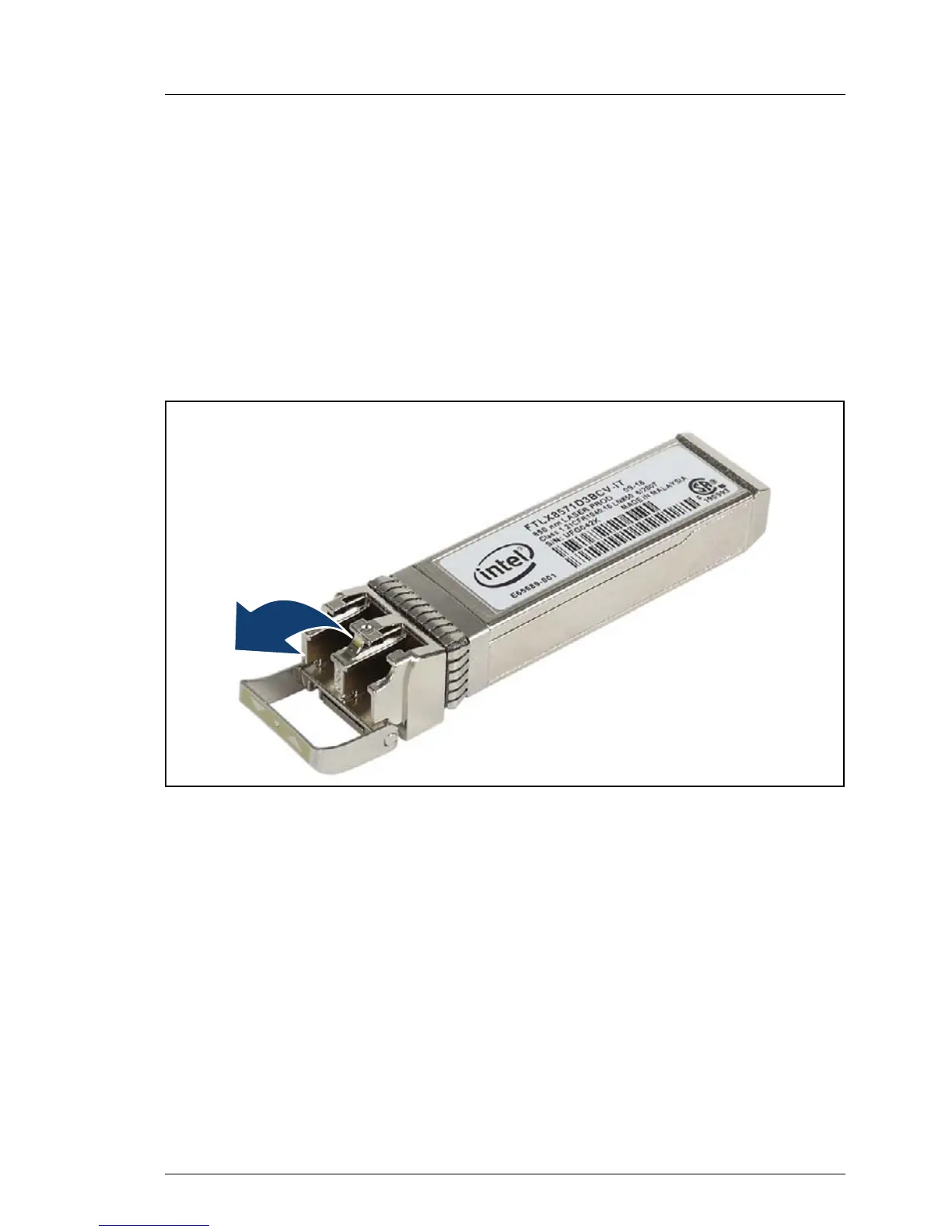 Ê Carefully unlatch and fold down the locking bail on the SFP+ transceiver