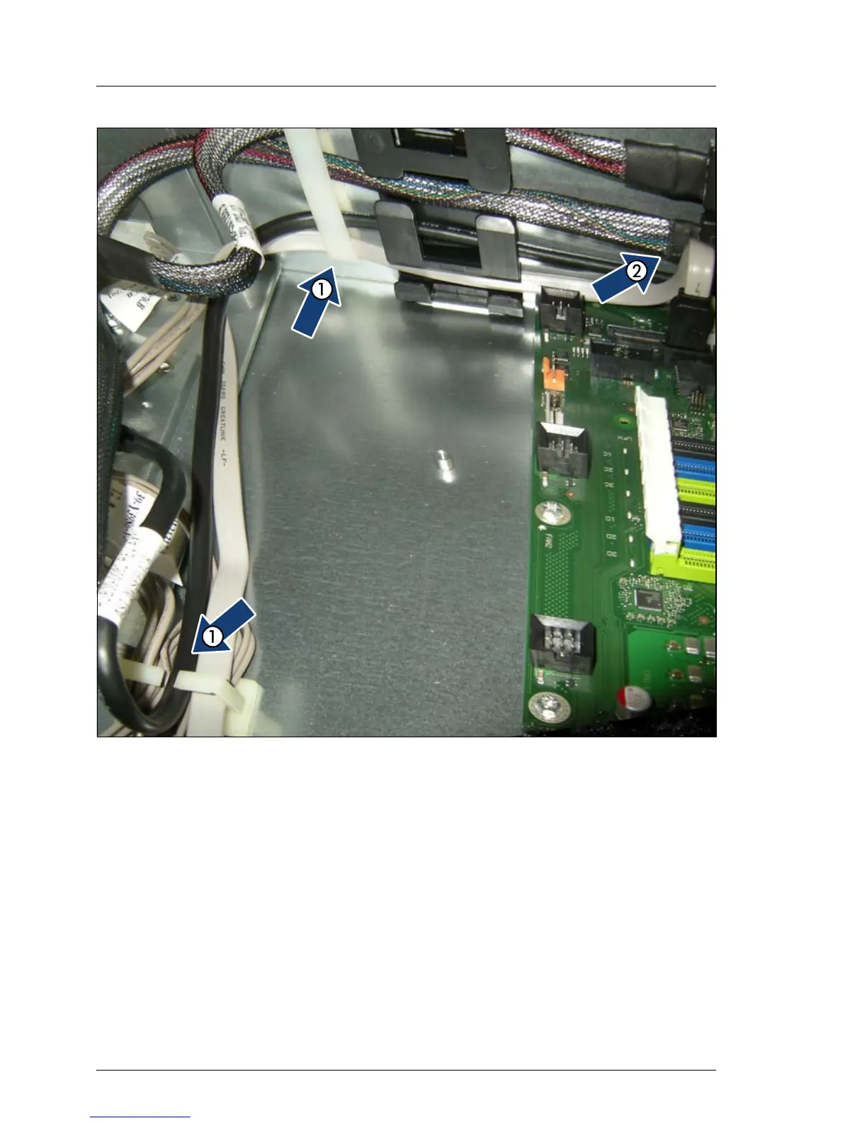 Ê Route the cable C21 as shown in the two cable clamps (1) and behind the