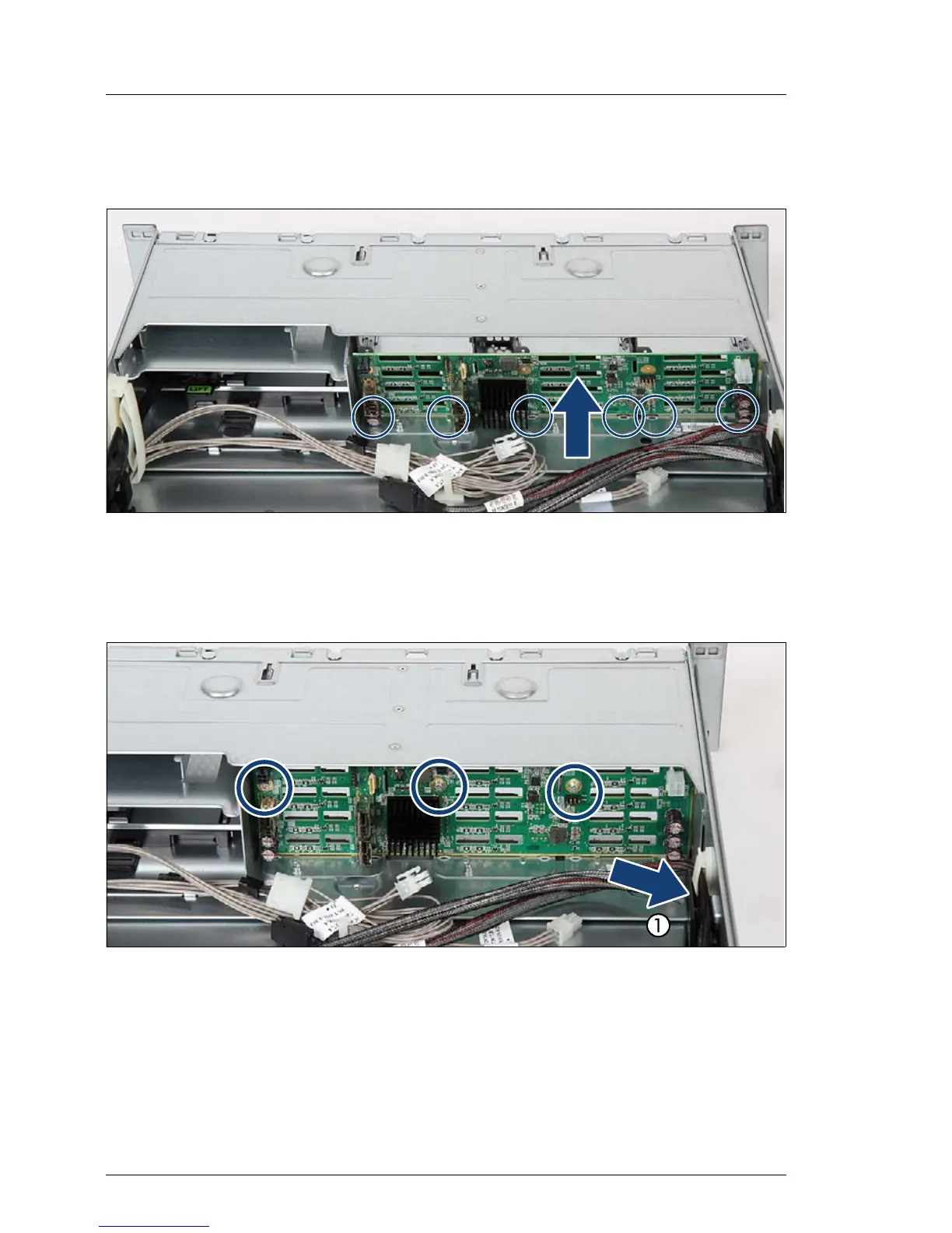 Ê Fasten the 12x 2.5-inch HDD backplane with three screws.