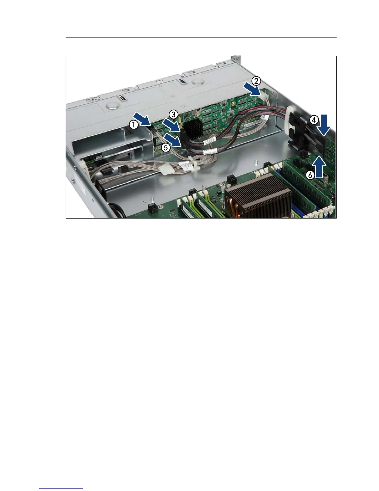 Ê Connect the cable C9 to X2 of the 12x 2.5-inch SAS backplane (5) and the