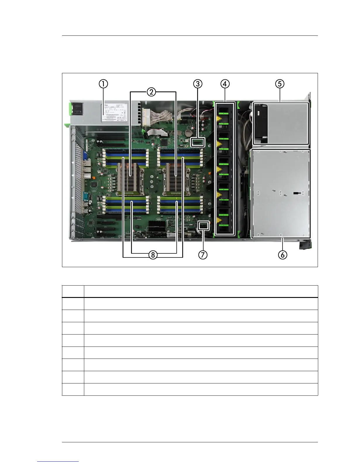 Figure 339: PRIMERGY RX300 S8 interior (example: 2.5-inch HDD model)