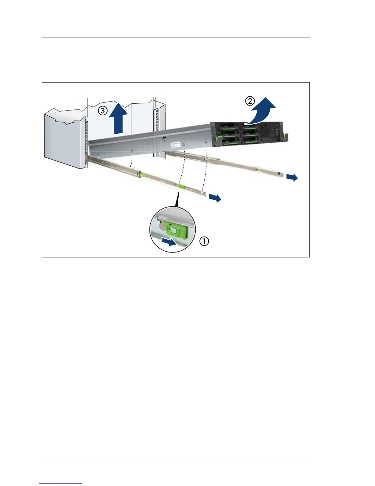 Ê Lift the server out of the rear mounting points (3) and place it on an even