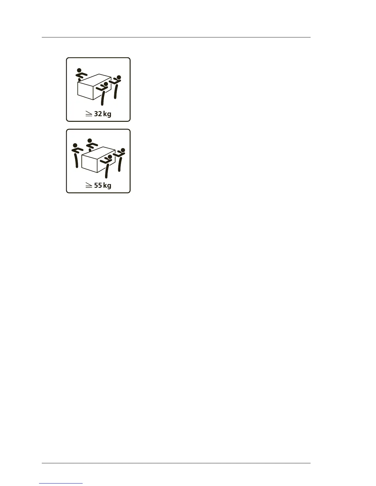 For configurations above 55 kg:
