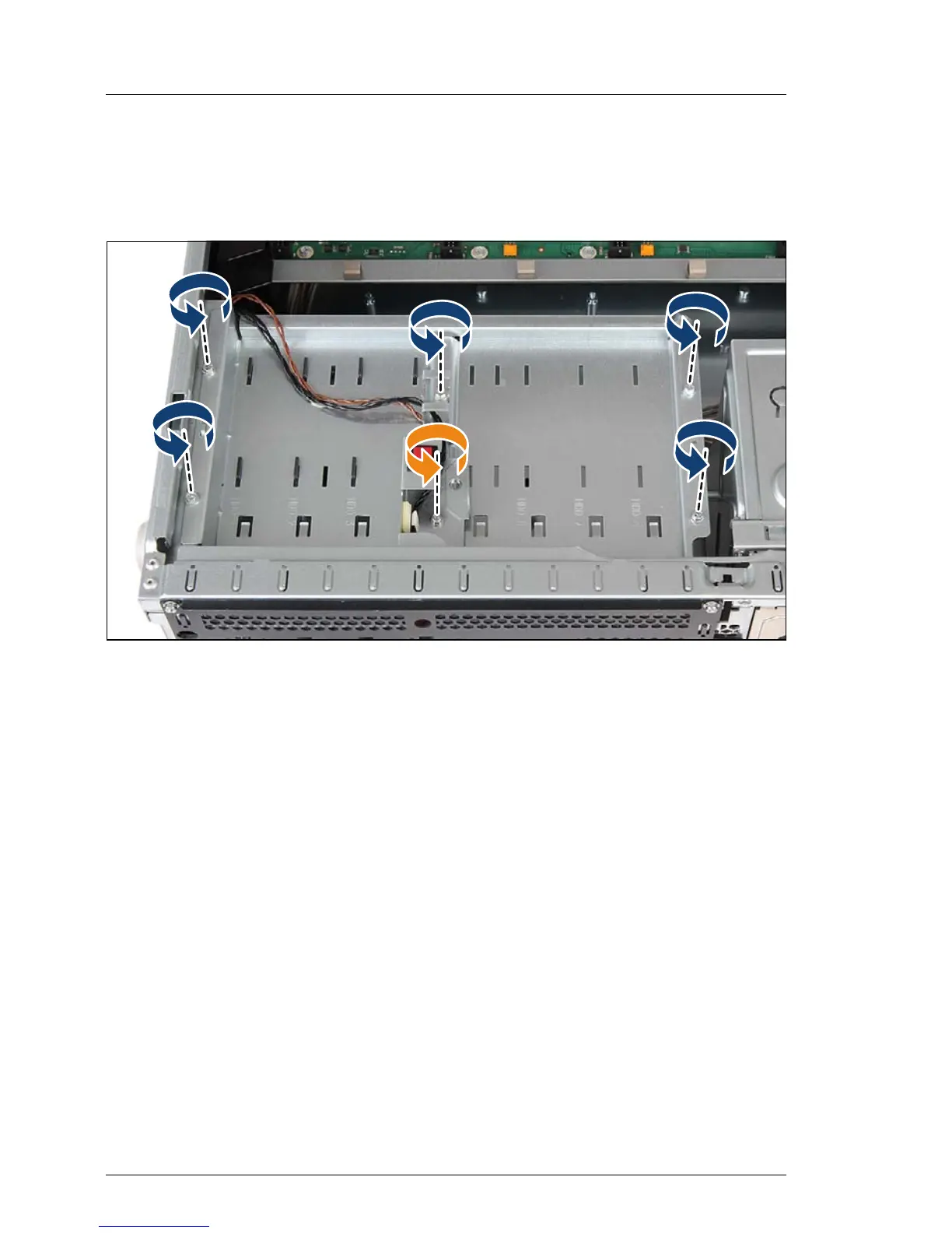 Ê Remove five screws from the 3.5-inch HDD bay top cover (see blue arrows).