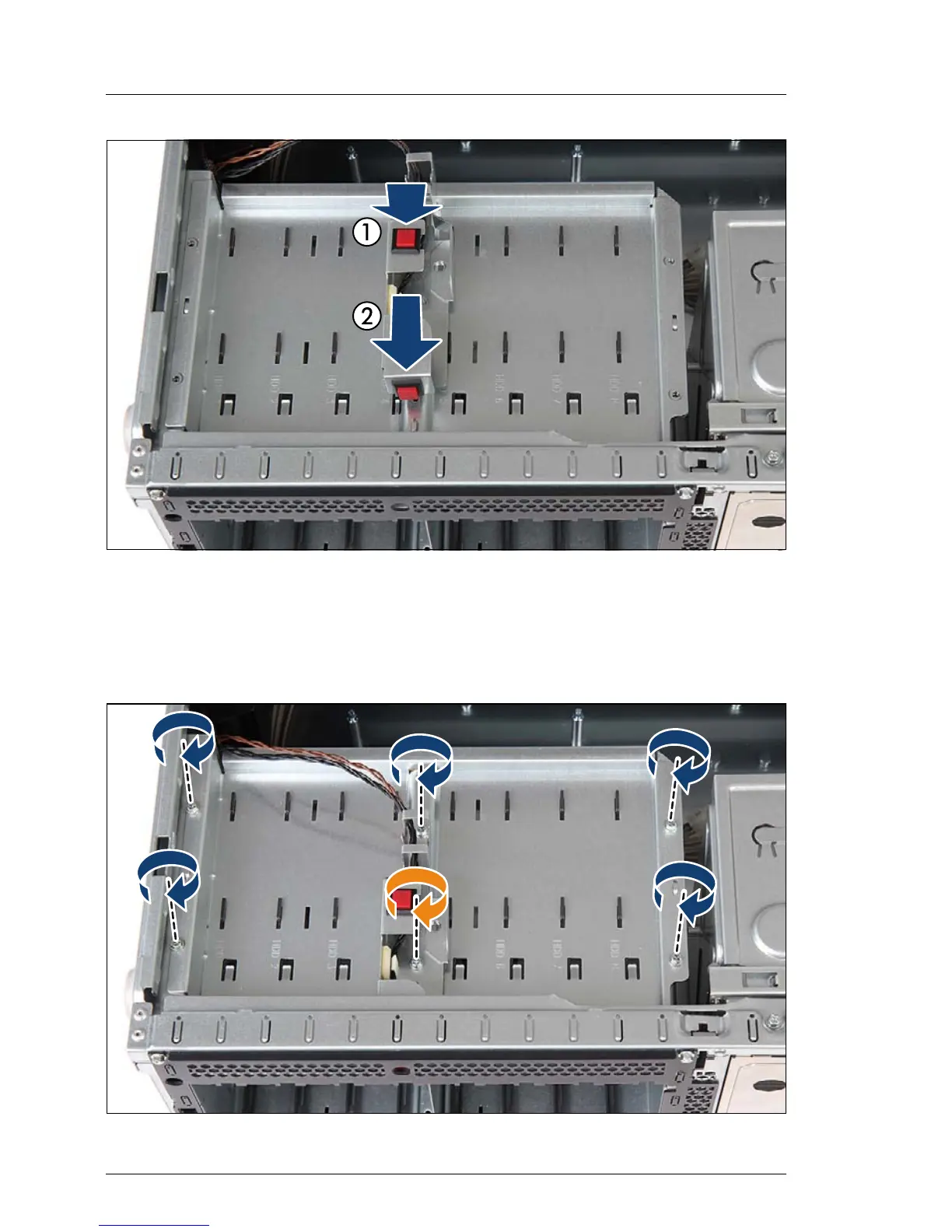 Ê Place the intrusion switch holder on the HDD bay top cover as shown (1).