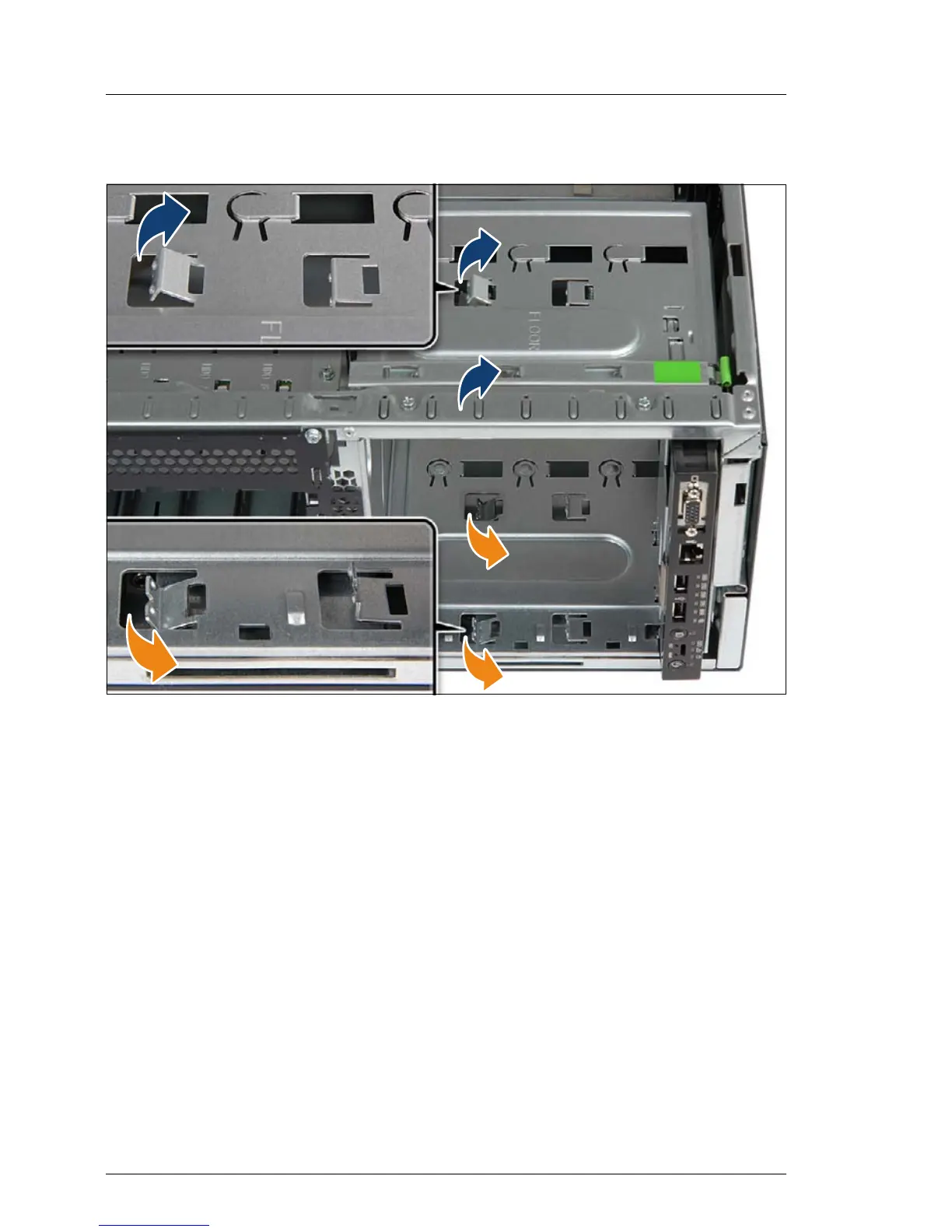 Ê Bend up the upper two mounting brackets (see blue arrows).
