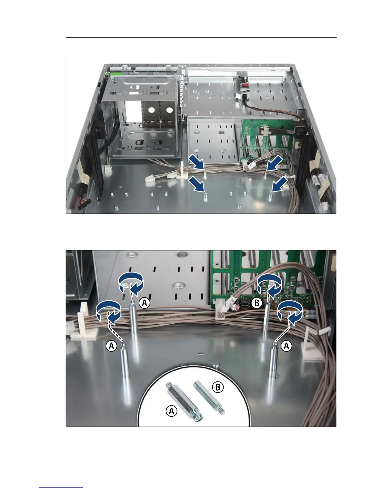 Figure 208: Installing SAS expander board spacer bolts (B)