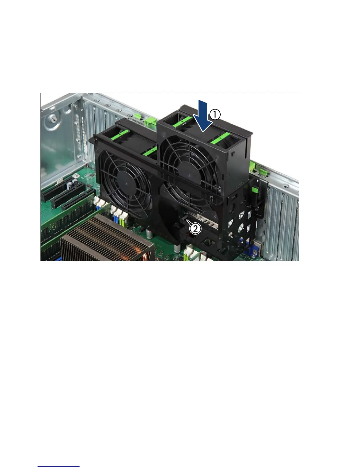 Ê Install the second rear fan module accordingly, with its label facing the server