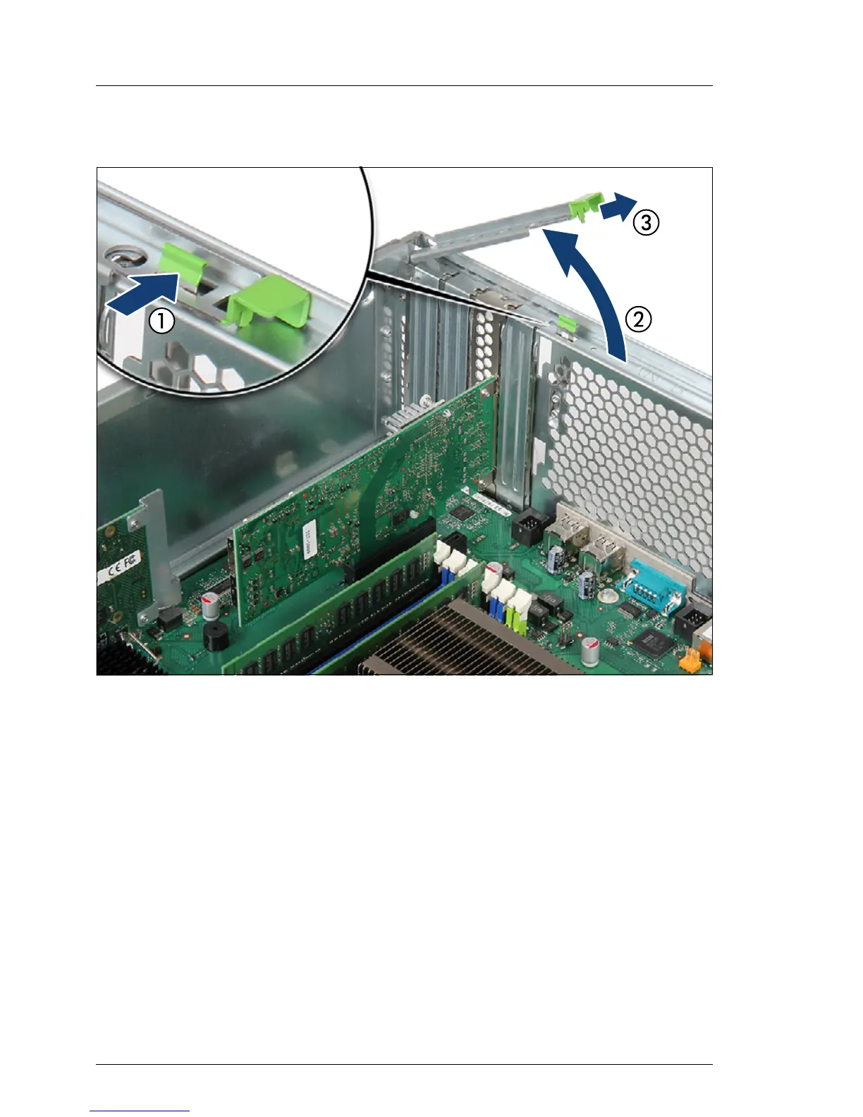 Ê Fold up (2) and remove (3) the PCI slot bracket locking bar.