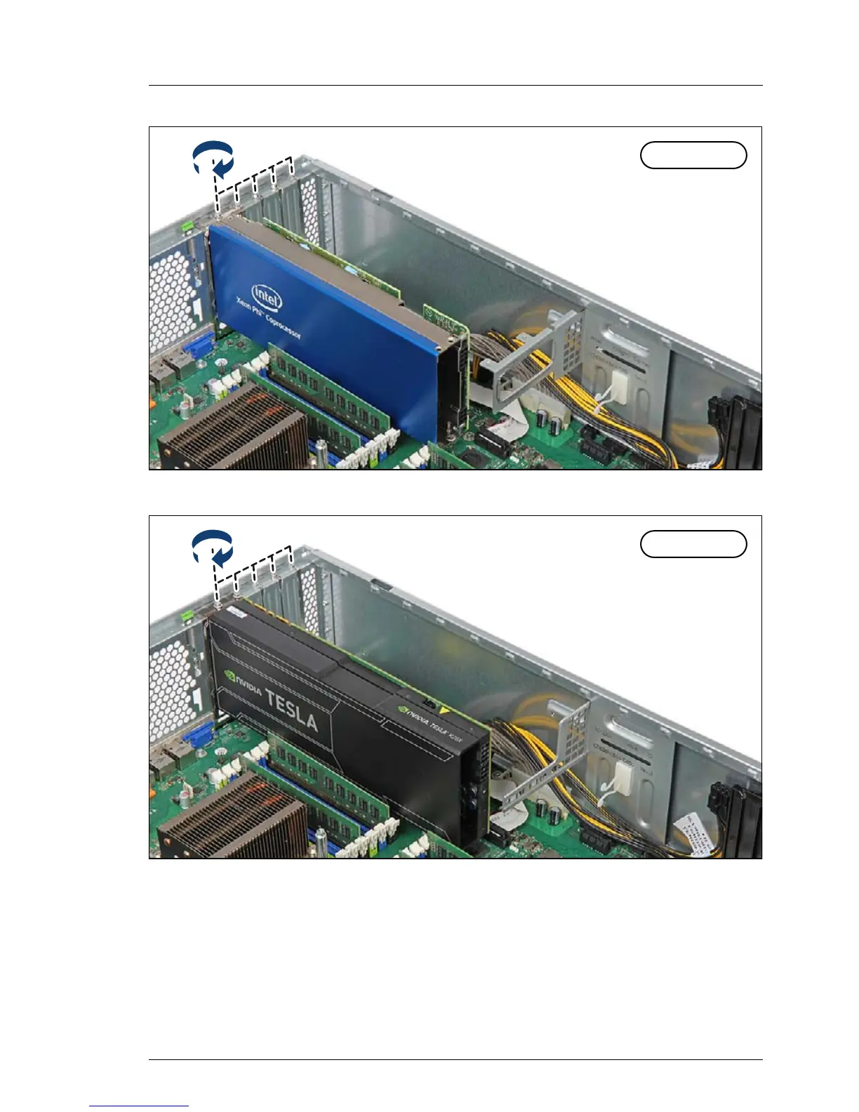 Ê Secure the GPGPU / coprocessor card to the upper rear edge of the chassis
