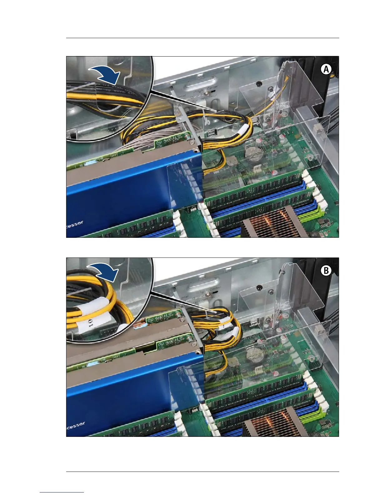 Figure 307: Routing the GPGPU card power cables in the air duct (2 cards)