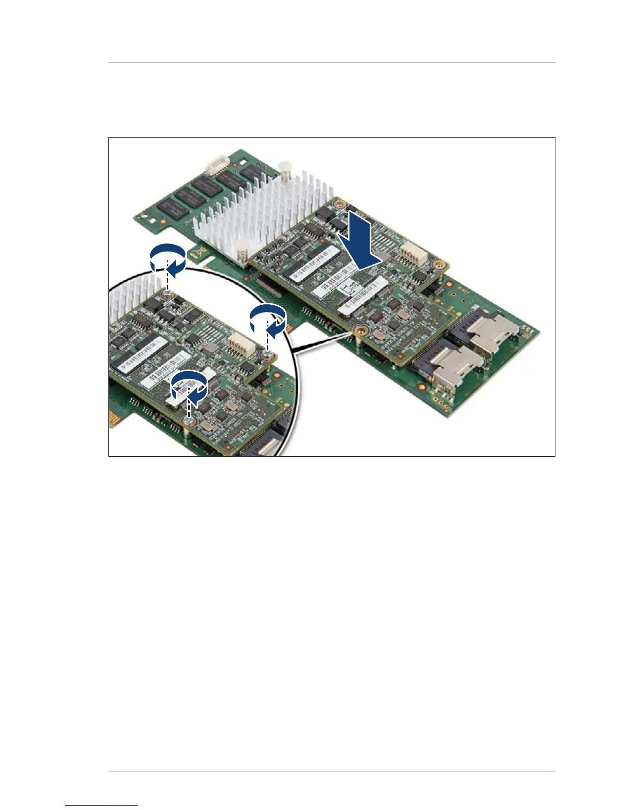 Ê Fit the three spacer bolts on the SAS RAID controller as shown and secure