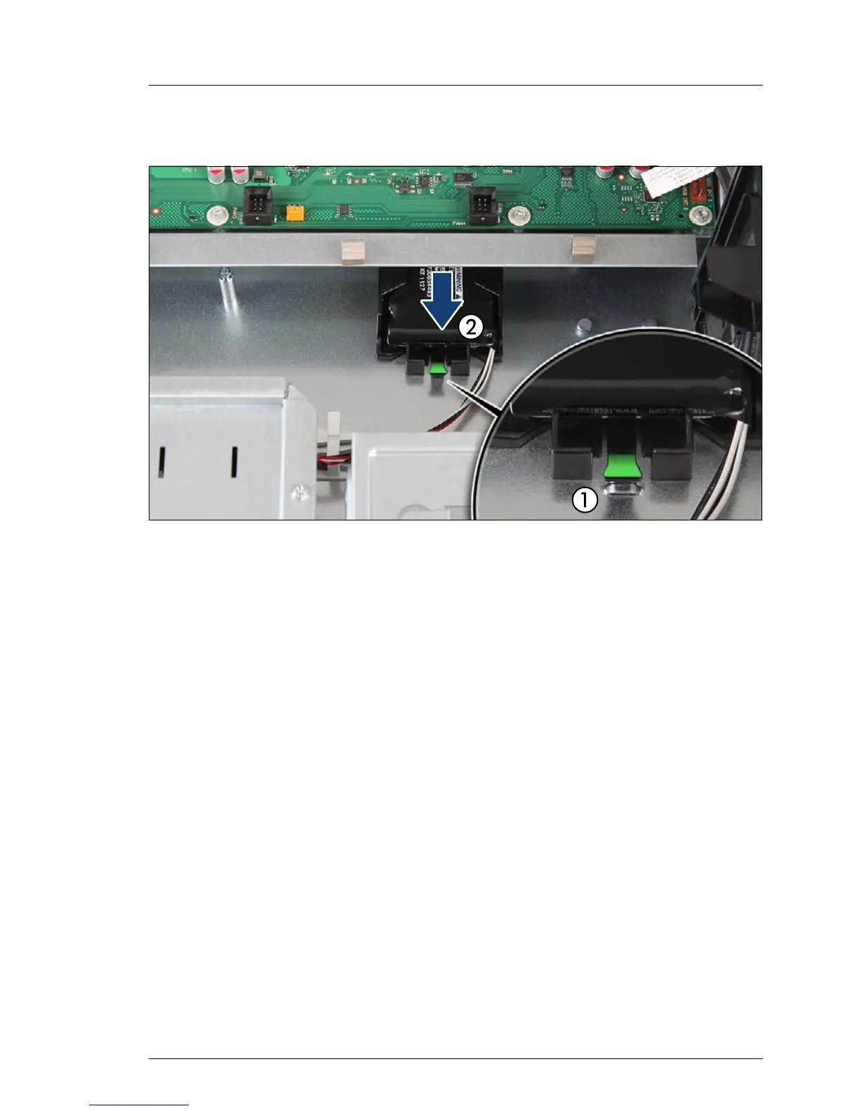 the FBU holder towards the server front as far as it will go (2).