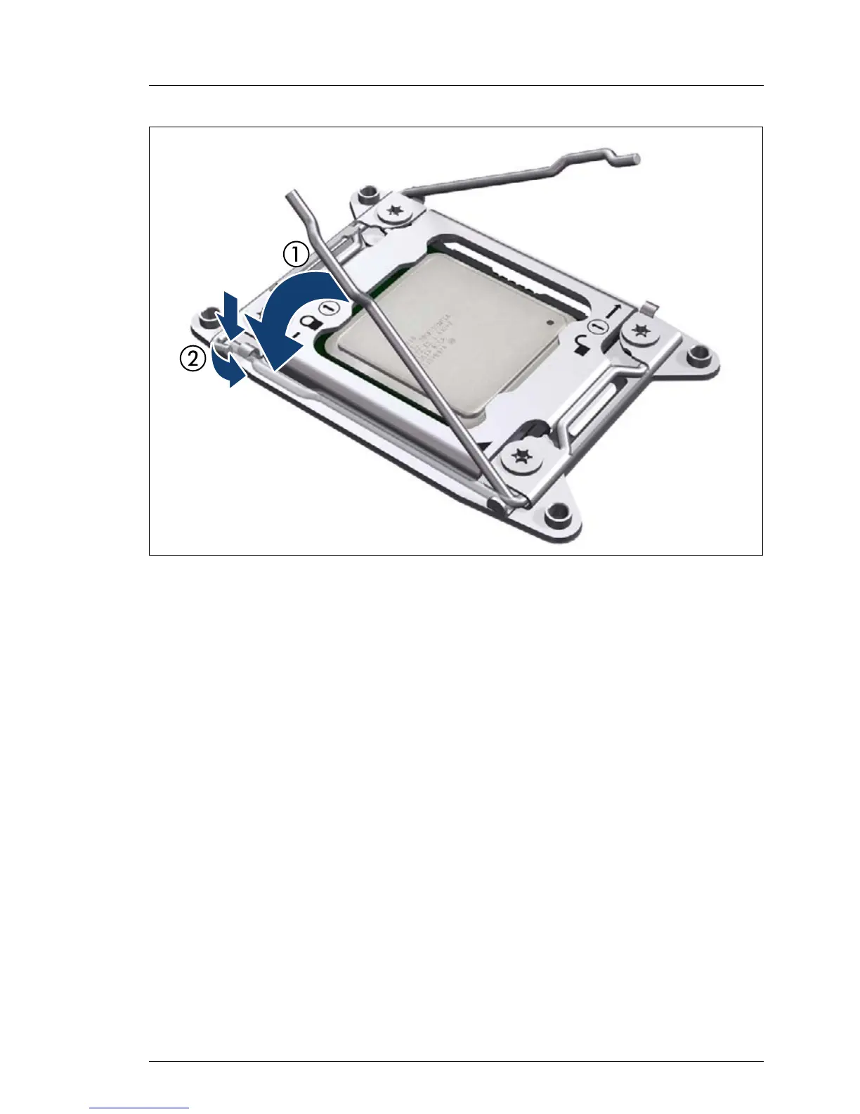 Ê Close the socket release lever marked Close 1st (1) and latch it under the