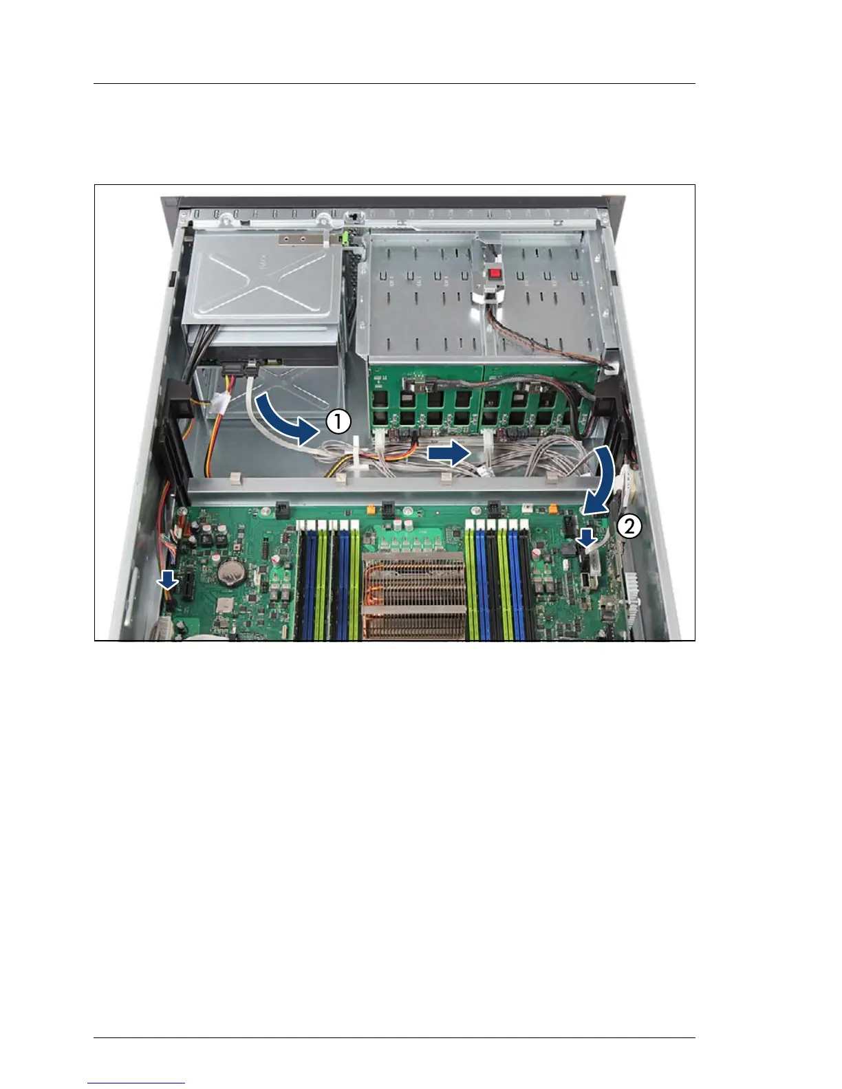 Ê Run SATA cable T26139-Y3958-V205 along the drive bays and through the