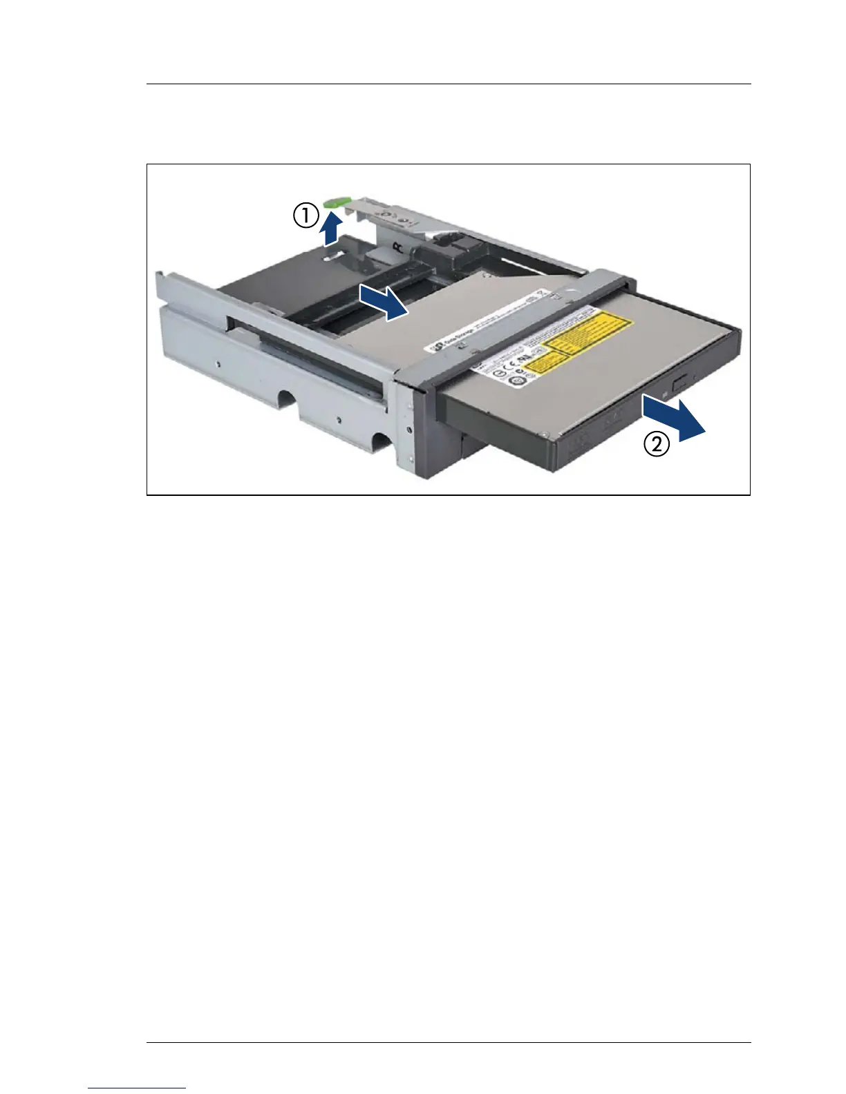 Ê Press up on the locking tab to disengage the slimline ODD module (1).
