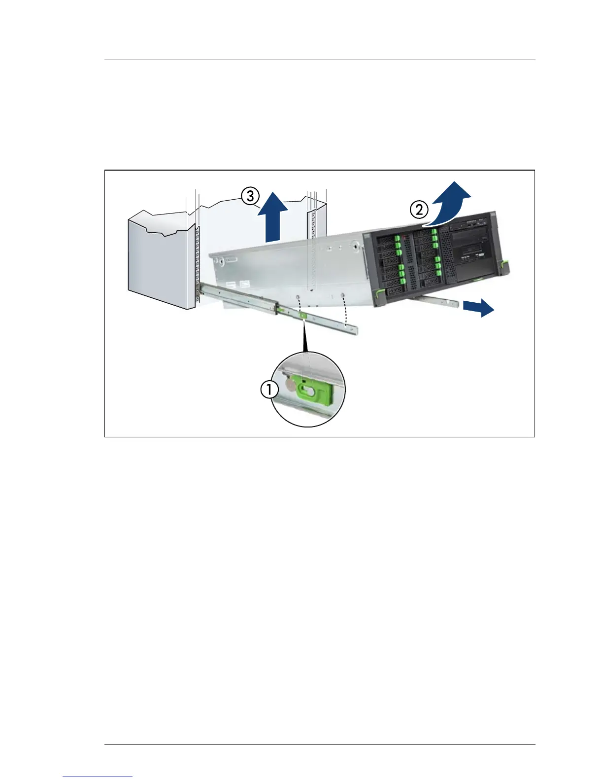 Ê Lift the server out of the rear mounting points (3) and place it on an even