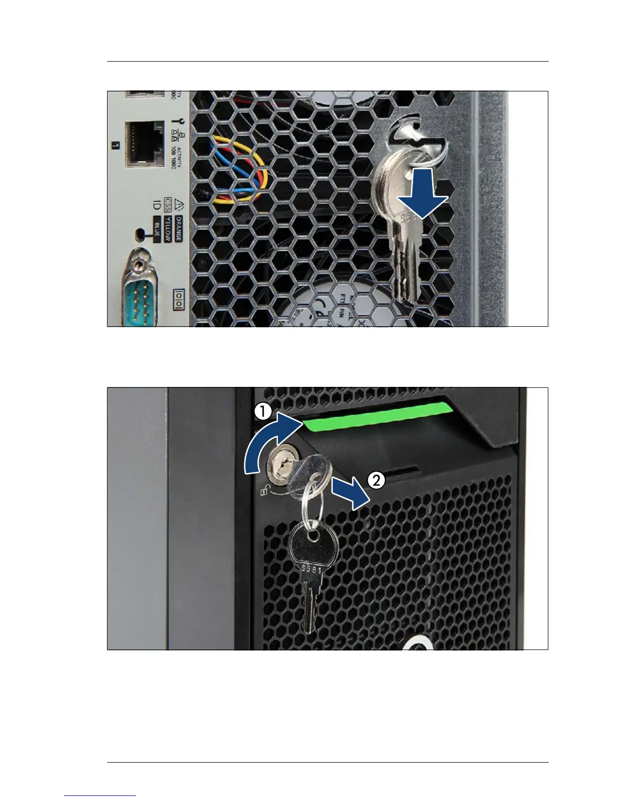 Ê Turn the key clockwise to unlock the front and side covers (1).