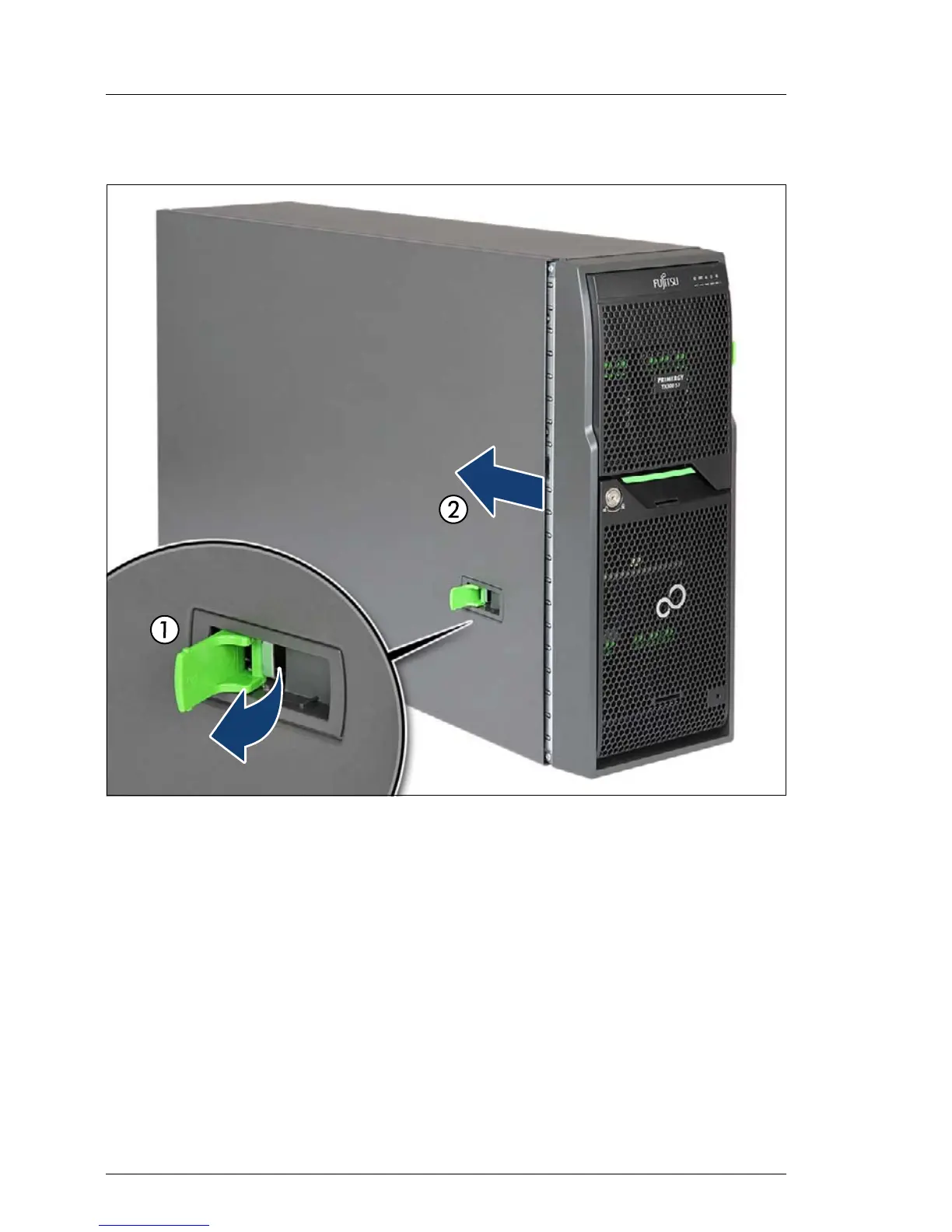 Ê Open the locking lever (1). This will slide the side cover back disengaging