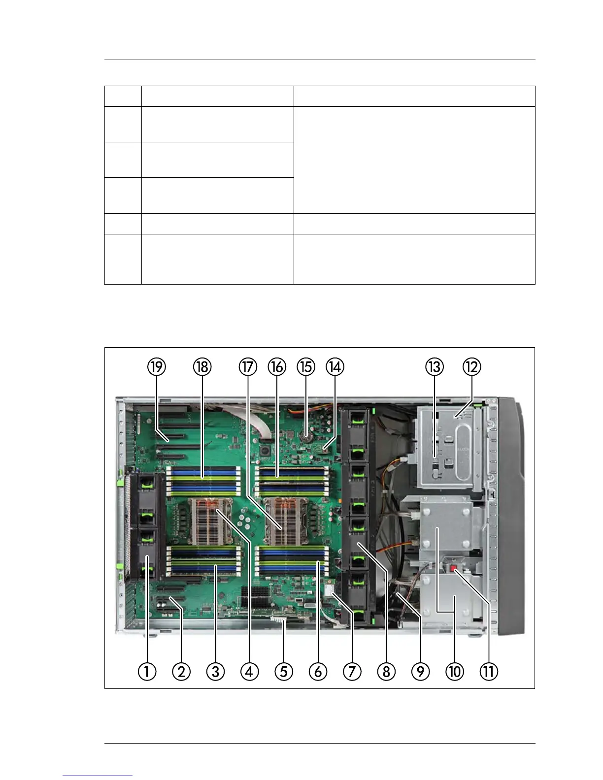 Figure 613: PRIMERGY TX300 S8 / RX350 S8 interior (example: 2.5-inch HDD tower model)